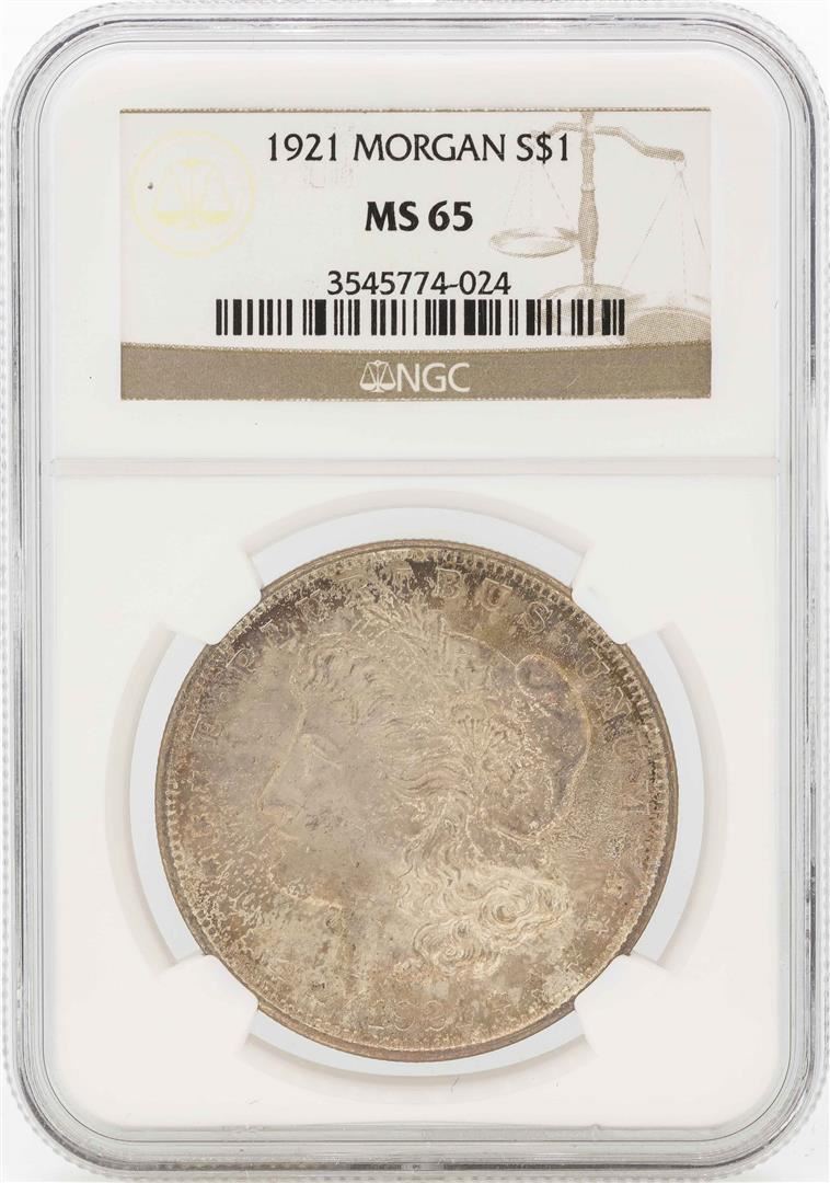 One 1921 $1 Morgan Silver Dollar Coin NGC MS65. NGC Certified.