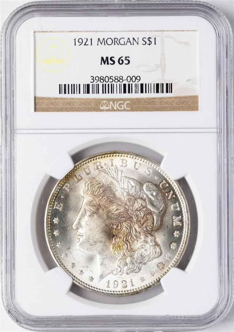 One 1921 $1 Morgan Silver Dollar Coin NGC MS65. NGC Certified.