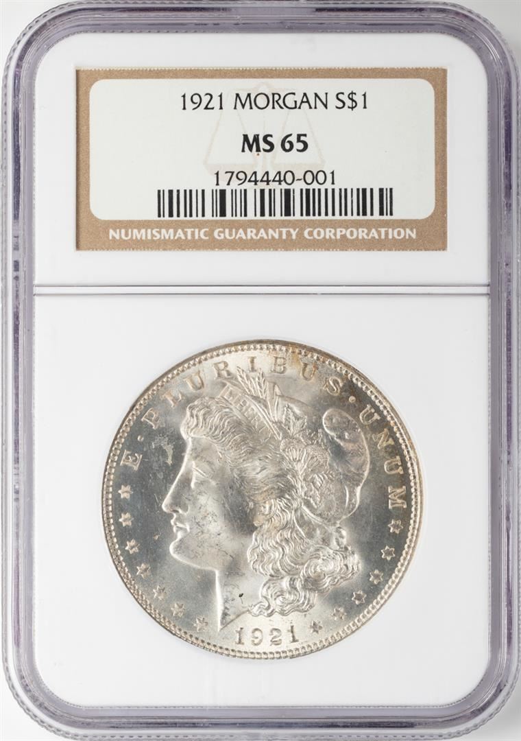 One 1921 $1 Morgan Silver Dollar Coin NGC MS65. NGC Certified.