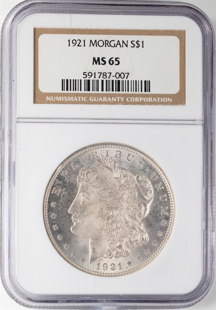 One 1921 $1 Morgan Silver Dollar Coin NGC MS65. NGC Certified.
