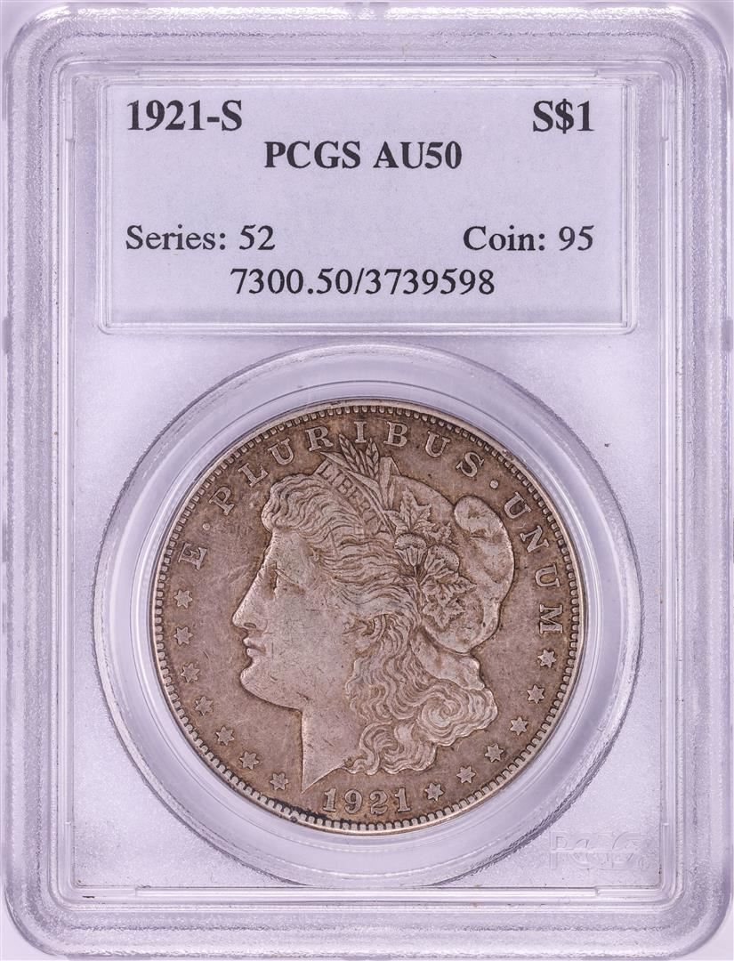 One 1921 $1 Morgan Silver Dollar Coin PCGS AU50. PCGS Graded.