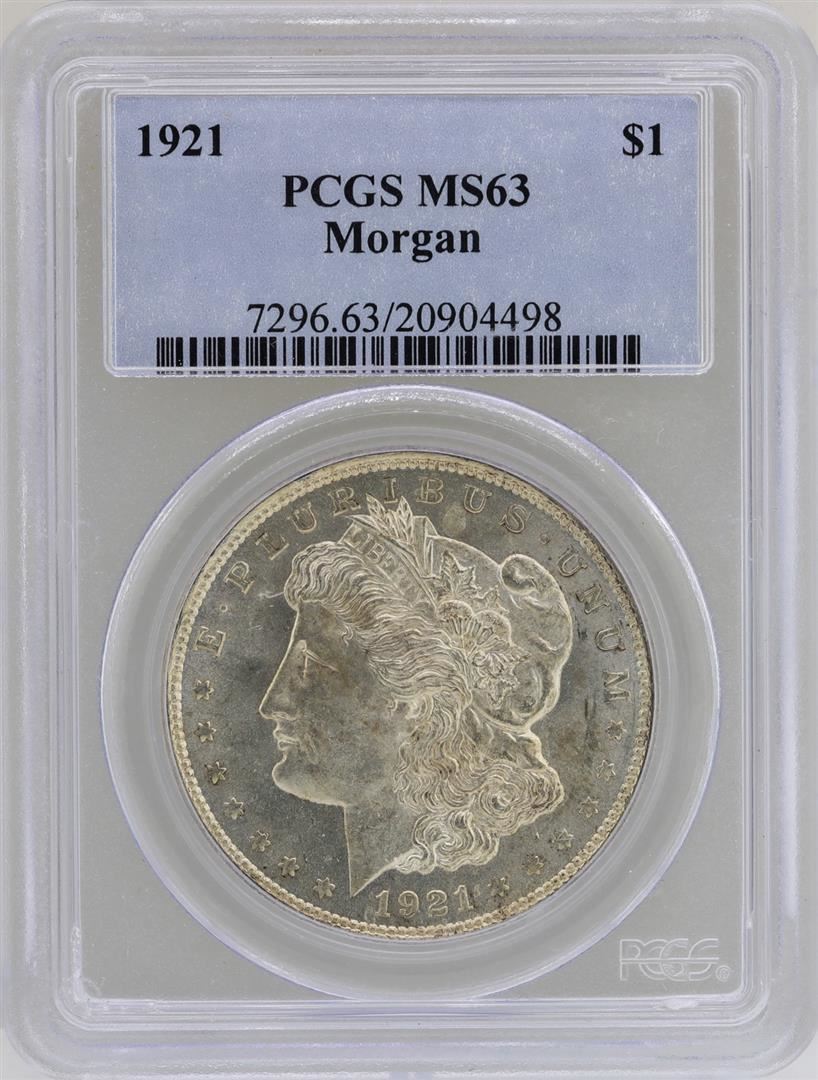 One 1921 $1 Morgan Silver Dollar Coin PCGS MS63. PCGS Graded.