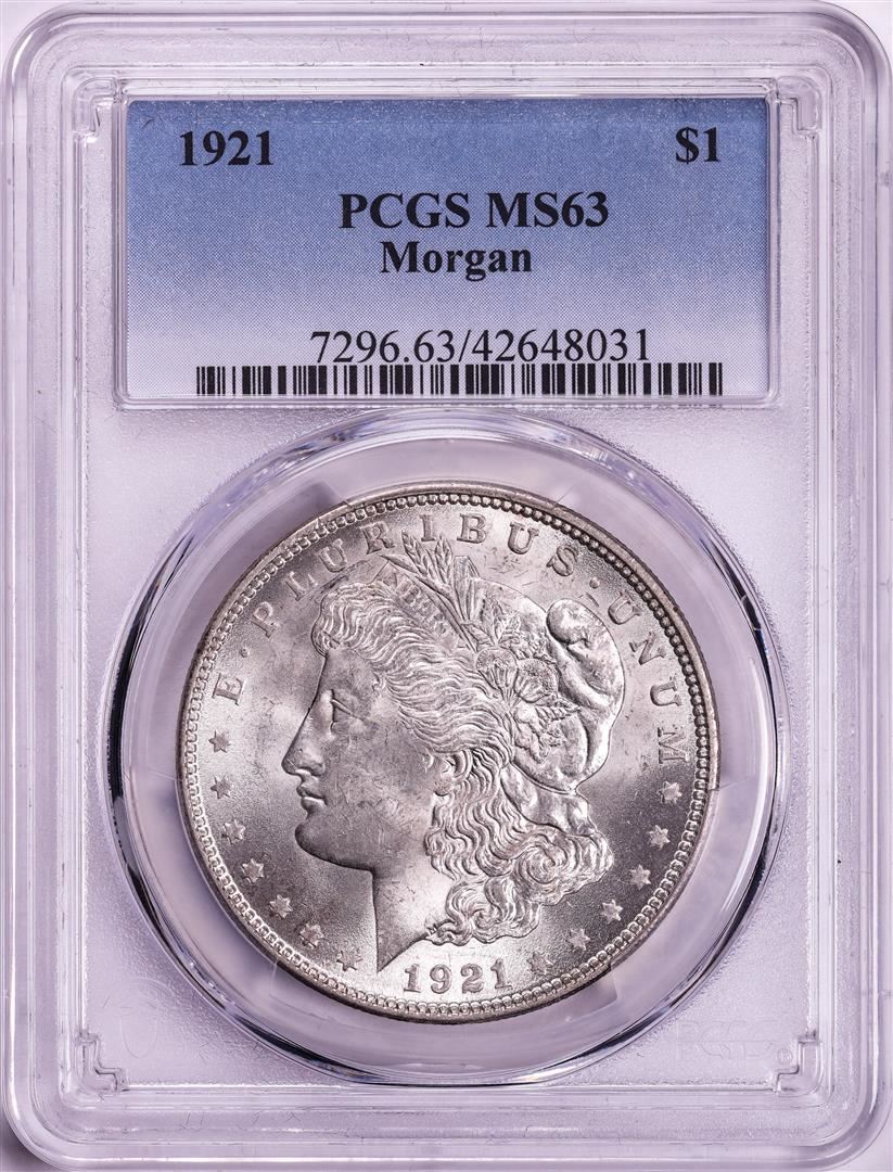 One 1921 $1 Morgan Silver Dollar Coin PCGS MS63. PCGS Graded.