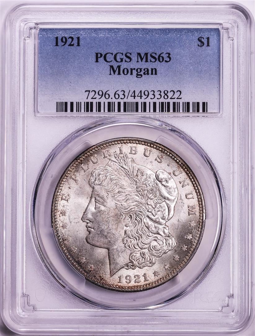One 1921 $1 Morgan Silver Dollar Coin PCGS MS63. PCGS Graded.