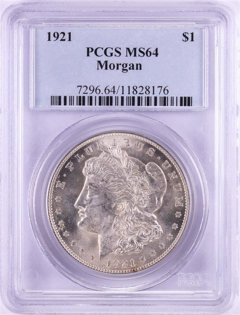 One 1921 $1 Morgan Silver Dollar Coin PCGS MS64. PCGS Graded.