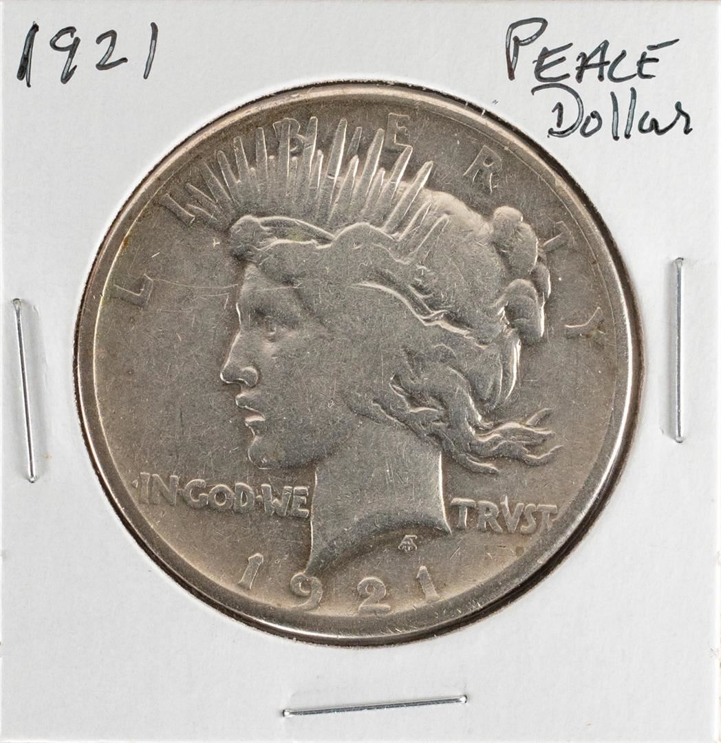 One 1921 $1 Peace Silver Dollar Coin.