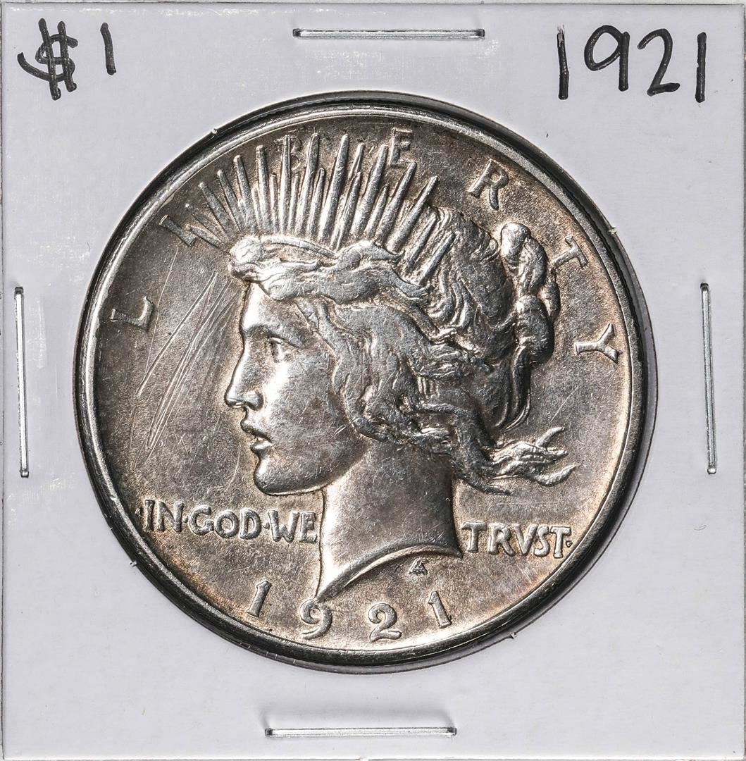 One 1921 $1 Peace Silver Dollar Coin.
