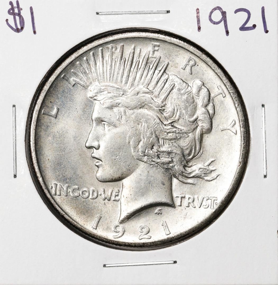 One 1921 $1 Peace Silver Dollar Coin.
