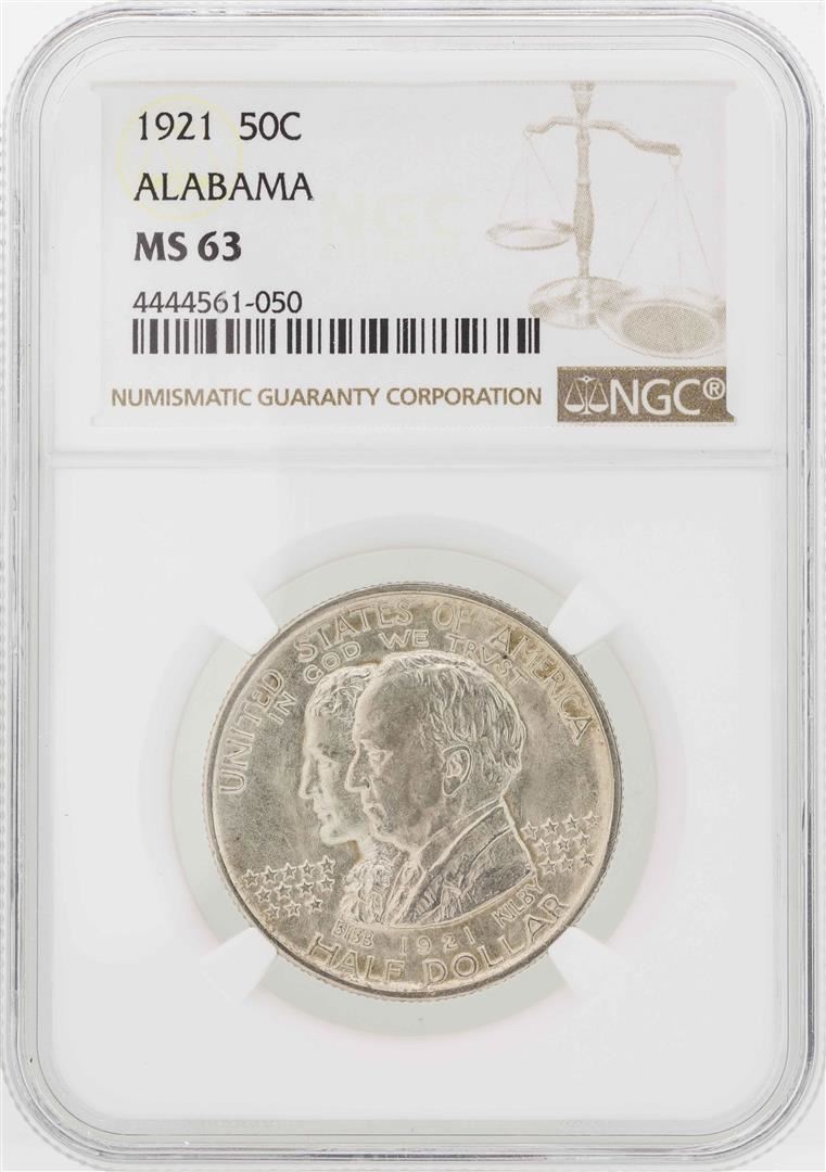 One 1921 Alabama Centennial Commemorative Half Dollar Coin NGC MS63. NGC Certified.