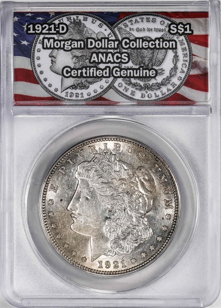 One 1921-D $1 Morgan Silver Dollar Coin ANACS Genuine. ANACS Certified.