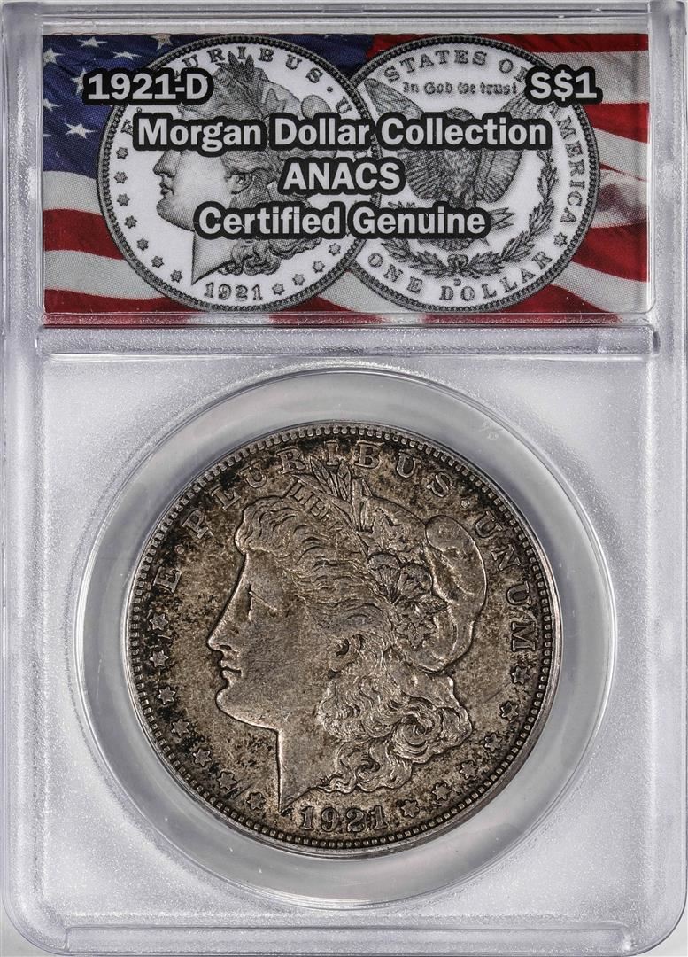 One 1921-D $1 Morgan Silver Dollar Coin ANACS Genuine. ANACS Certified.