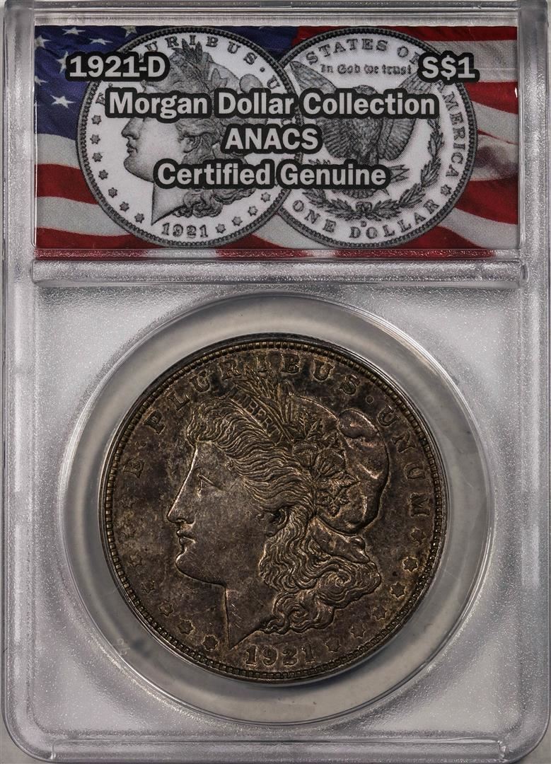 One 1921-D $1 Morgan Silver Dollar Coin ANACS Genuine. ANACS Certified.