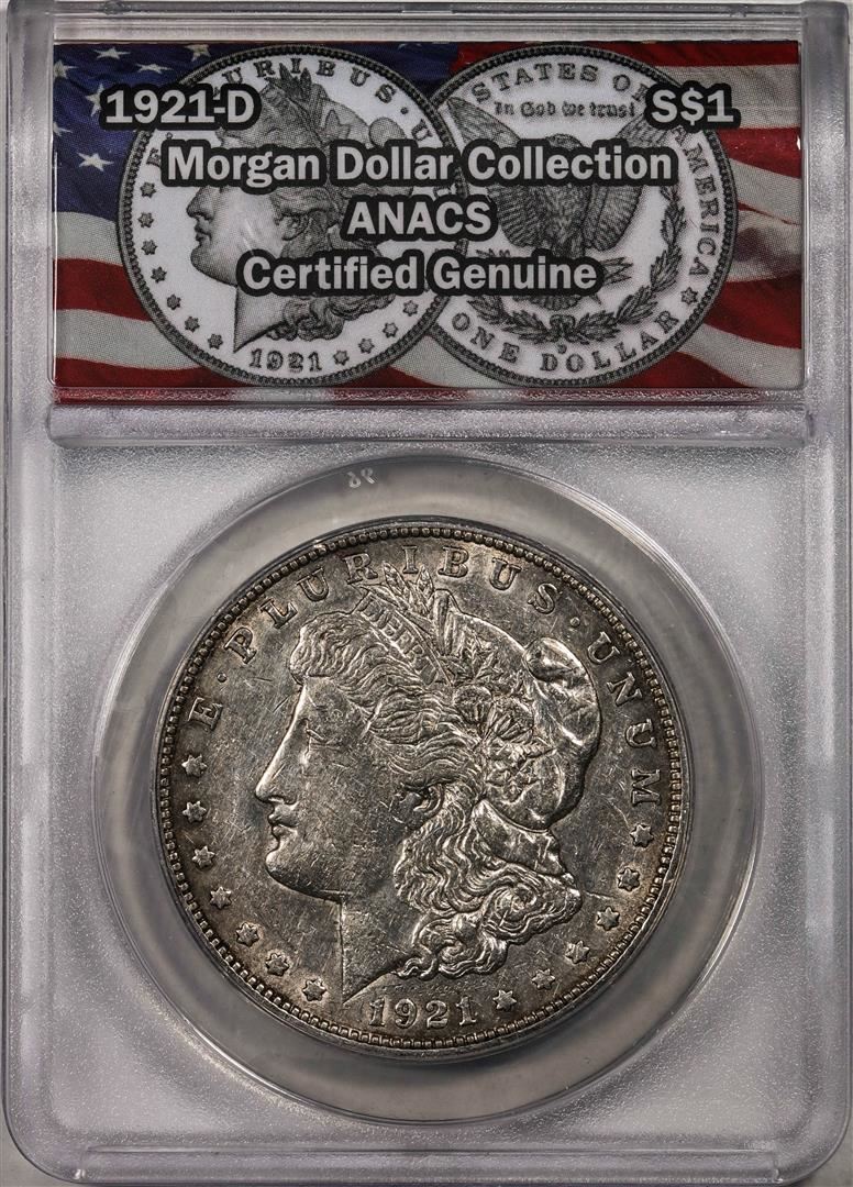 One 1921-D $1 Morgan Silver Dollar Coin ANACS Genuine. ANACS Certified.