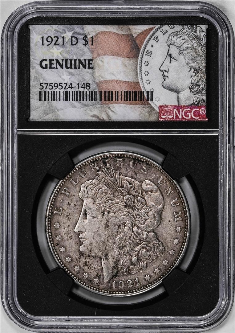 One 1921-D $1 Morgan Silver Dollar Coin NGC Genuine. NGC Certified.