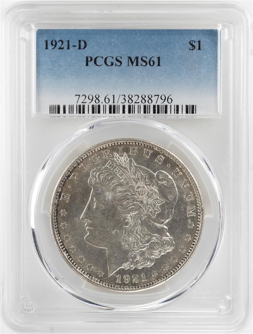 One 1921-D $1 Morgan Silver Dollar Coin PCGS MS61. PCGS Graded.