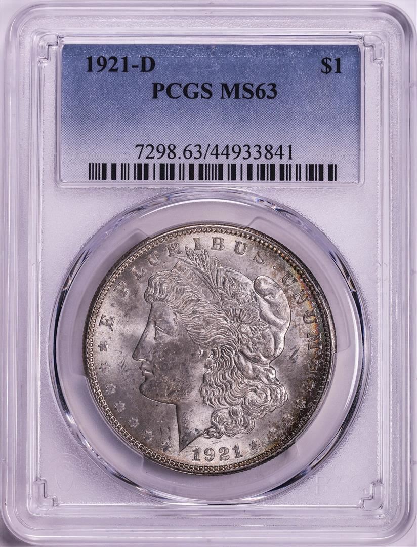 One 1921-D $1 Morgan Silver Dollar Coin PCGS MS63. PCGS Graded.