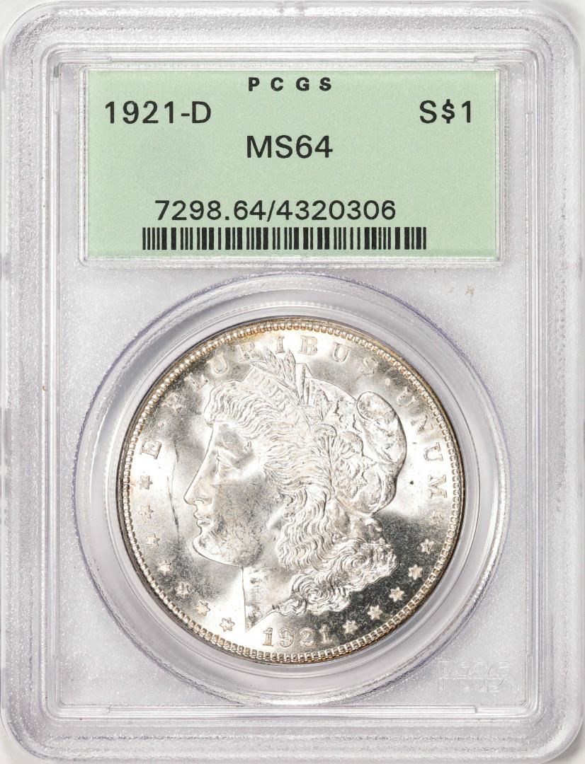 1921-D $1 Morgan Silver Dollar Coin PCGS MS64 Old Green Holder