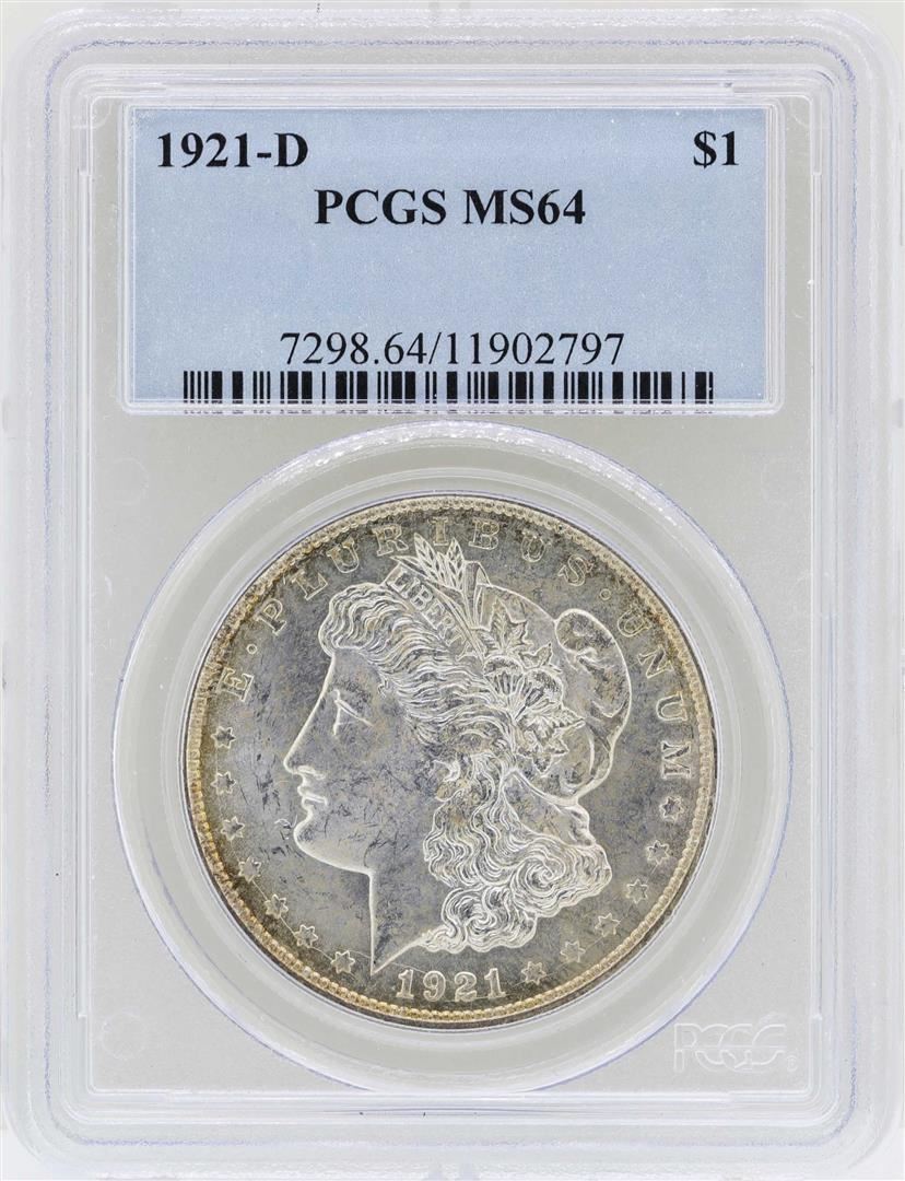 One 1921-D $1 Morgan Silver Dollar Coin PCGS MS64. PCGS Graded.