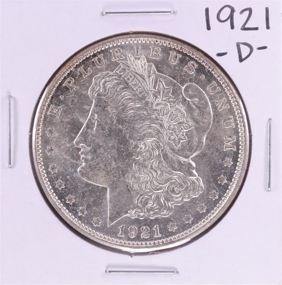 One 1921-D $1 Morgan Silver Dollar Coin.