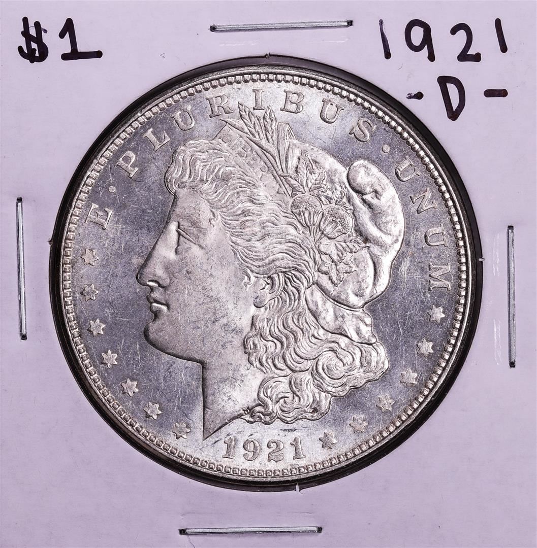 One 1921-D $1 Morgan Silver Dollar Coin.