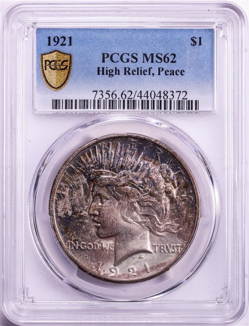 One 1921 High Relief $1 Peace Silver Dollar Coin PCGS MS62. PCGS Graded.