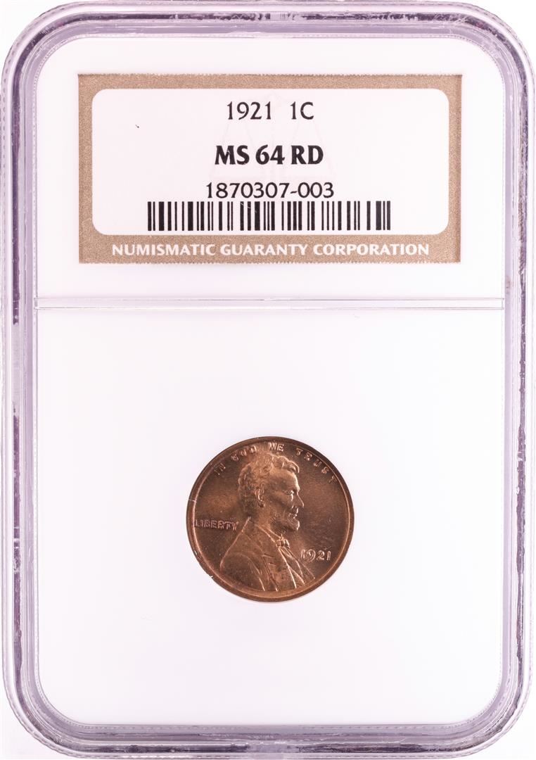 One 1921 Lincoln Wheat Cent Coin NGC MS64RD. NGC Certified.