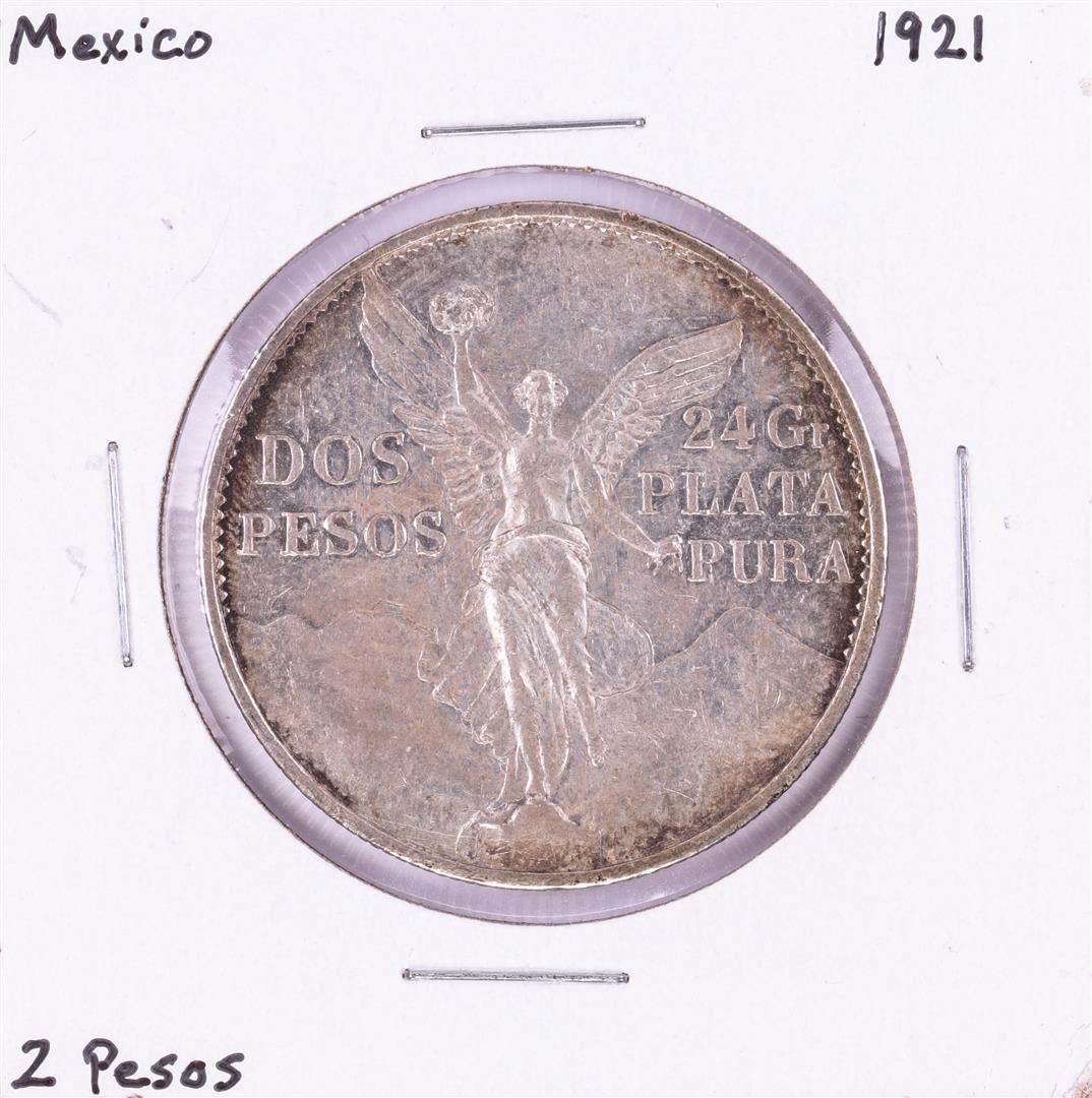 One 1921 Mexico 2 Pesos Silver Coin.