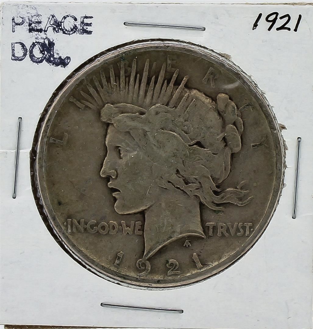 One 1921 Peace Silver Dollar Coin.