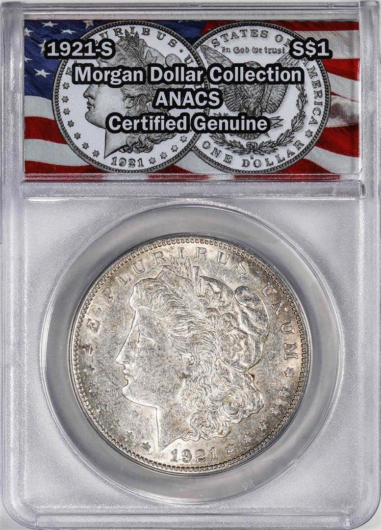 One 1921-S $1 Morgan Silver Dollar Coin ANACS Genuine. ANACS Certified.