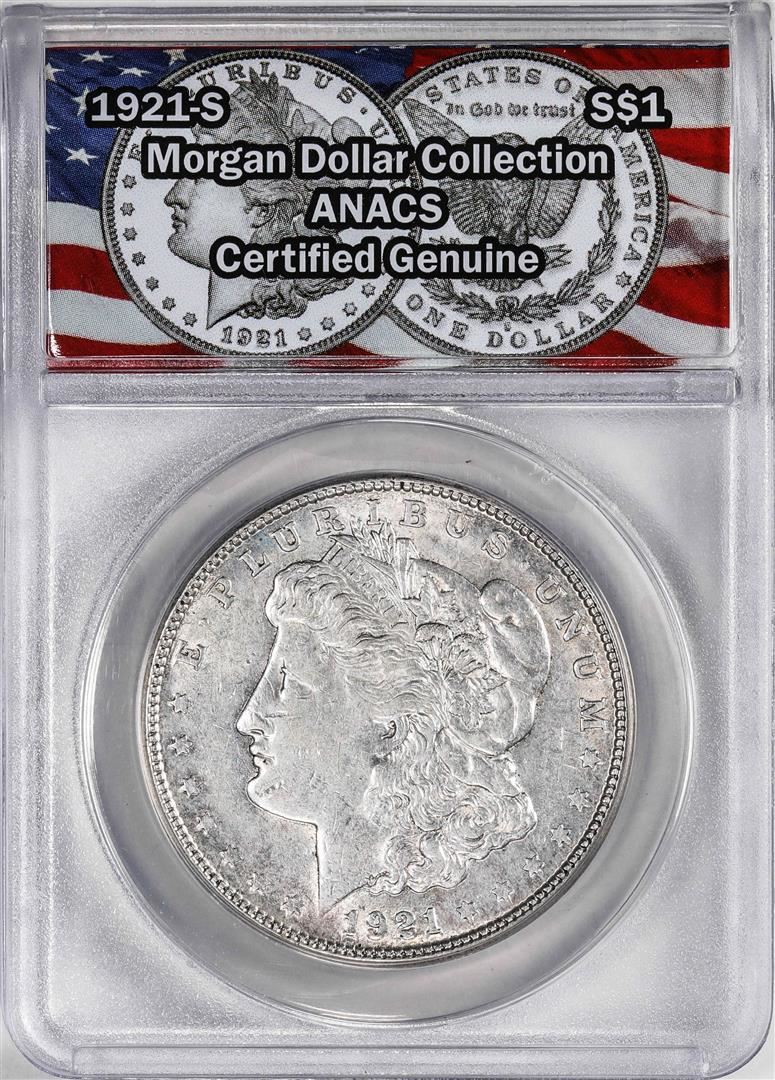 One 1921-S $1 Morgan Silver Dollar Coin ANACS Genuine. ANACS Certified.