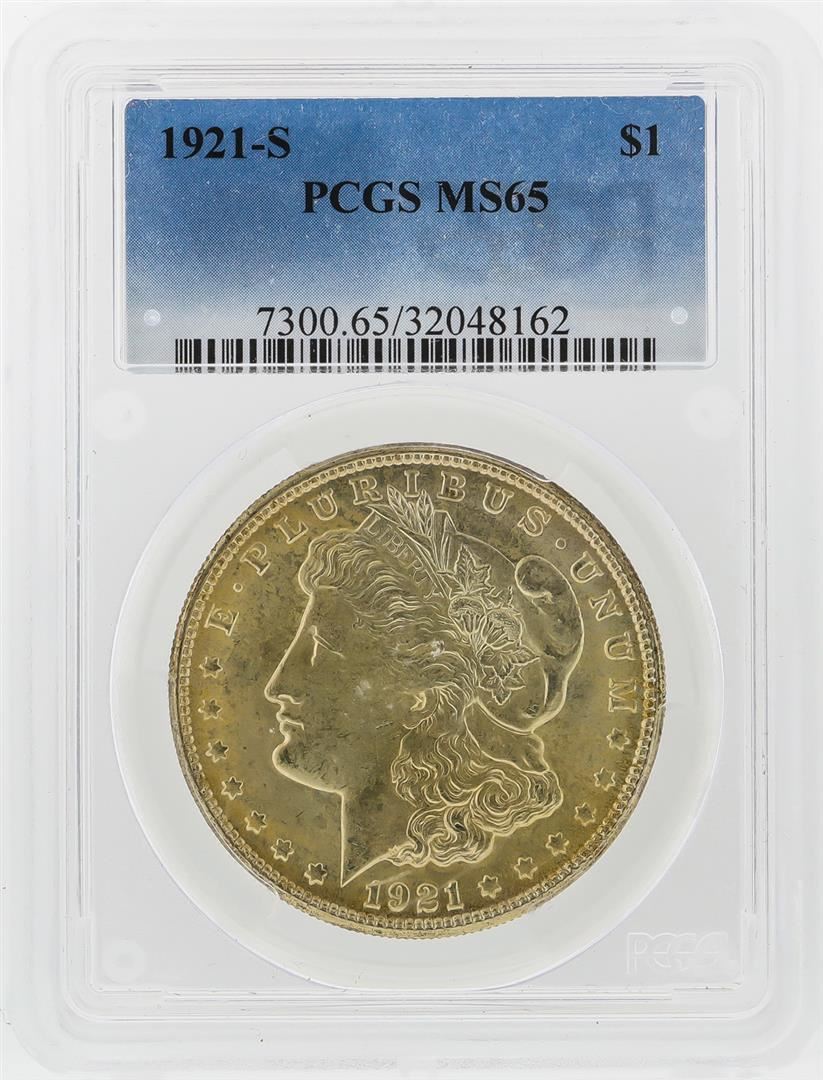 One 1921-S $1 Morgan Silver Dollar Coin PCGS Graded MS65. PCGS Graded.