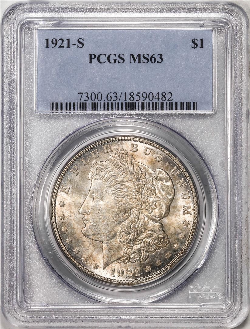 One 1921-S $1 Morgan Silver Dollar Coin PCGS MS63. PCGS Graded.
