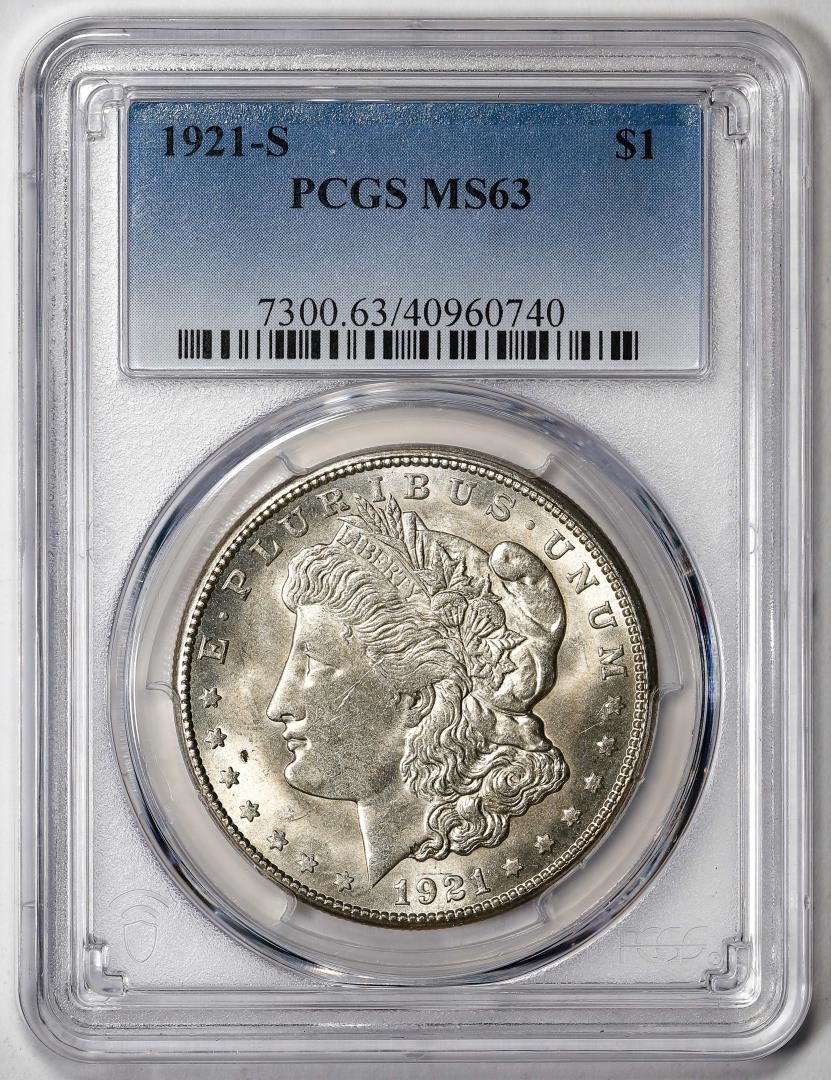 One 1921-S $1 Morgan Silver Dollar Coin PCGS MS63. PCGS Graded.