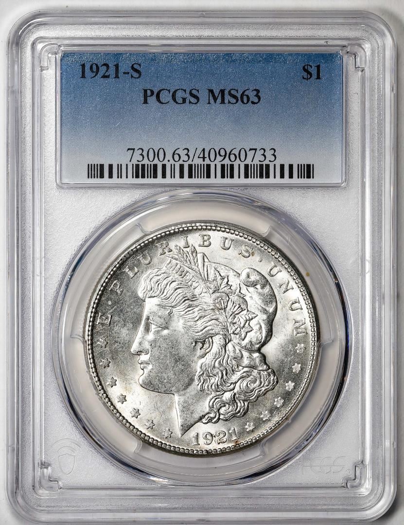One 1921-S $1 Morgan Silver Dollar Coin PCGS MS63. PCGS Graded.