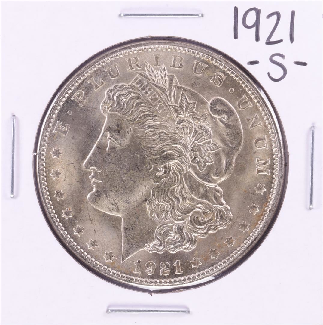 One 1921-S $1 Morgan Silver Dollar Coin.