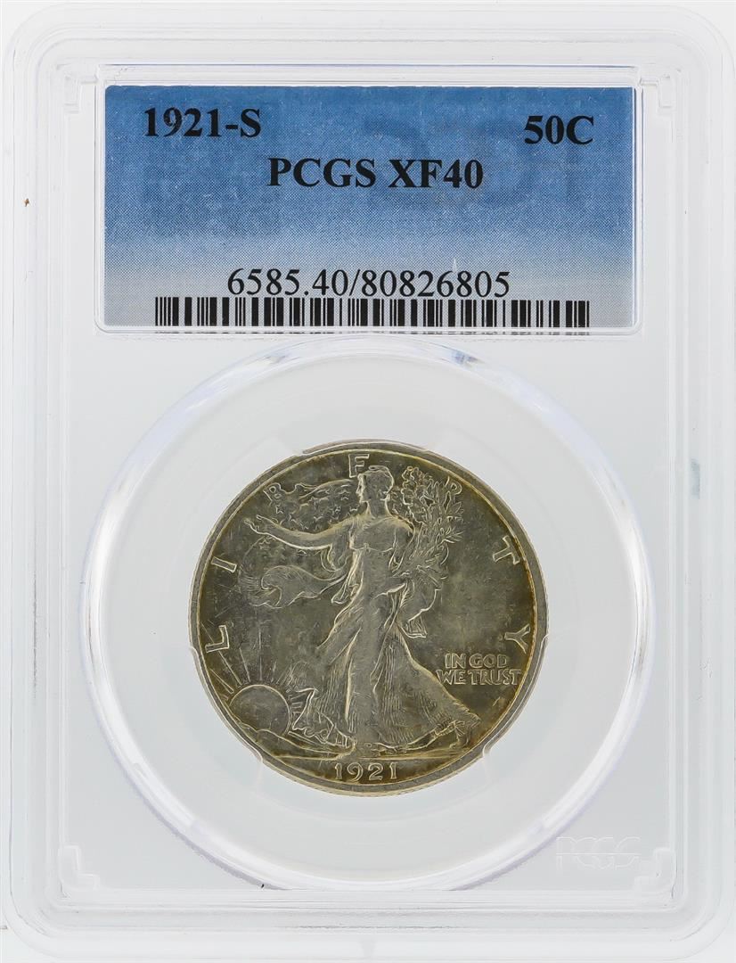 One 1921-S Liberty Walking Half Dollar Coin PCGS XF40. PCGS Graded.