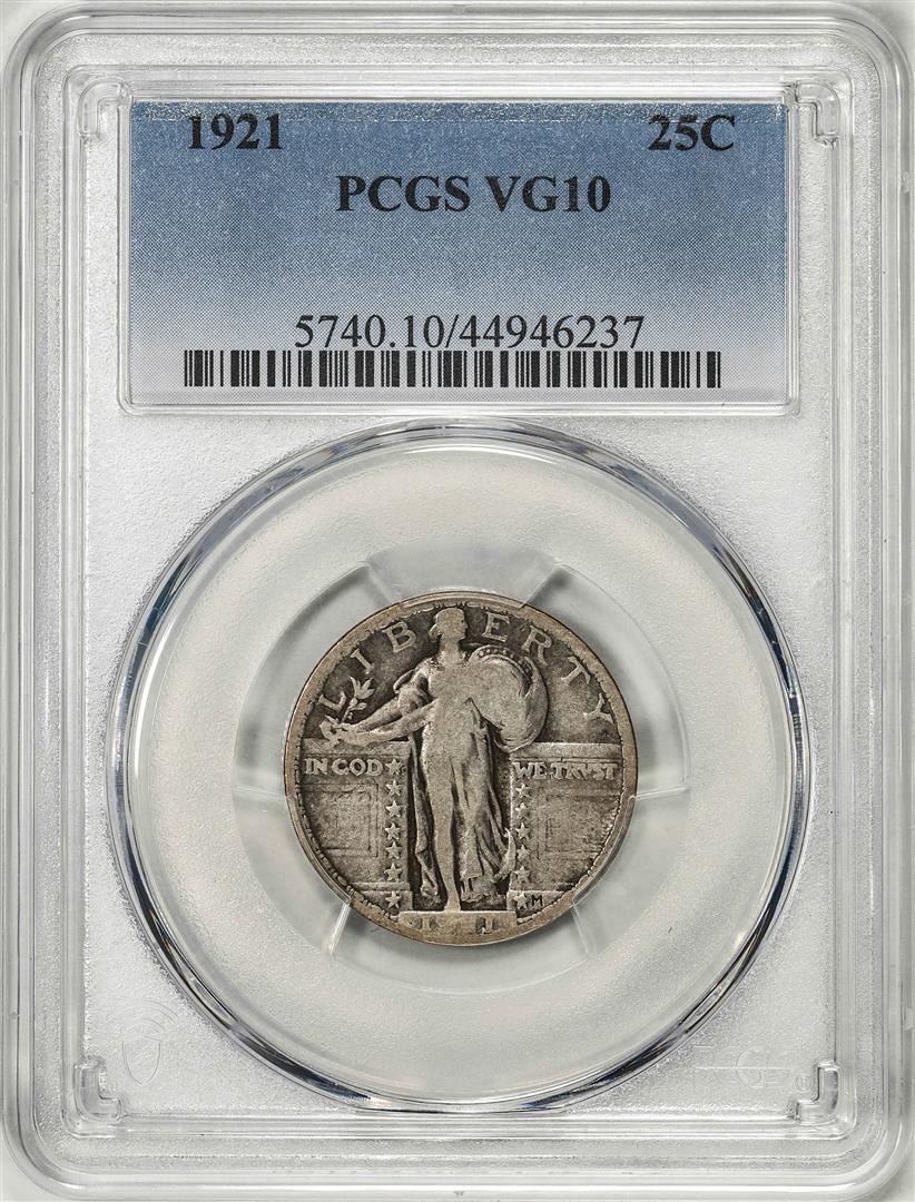 One 1921 Standing Liberty Quarter Coin PCGS VG10. PCGS Graded.