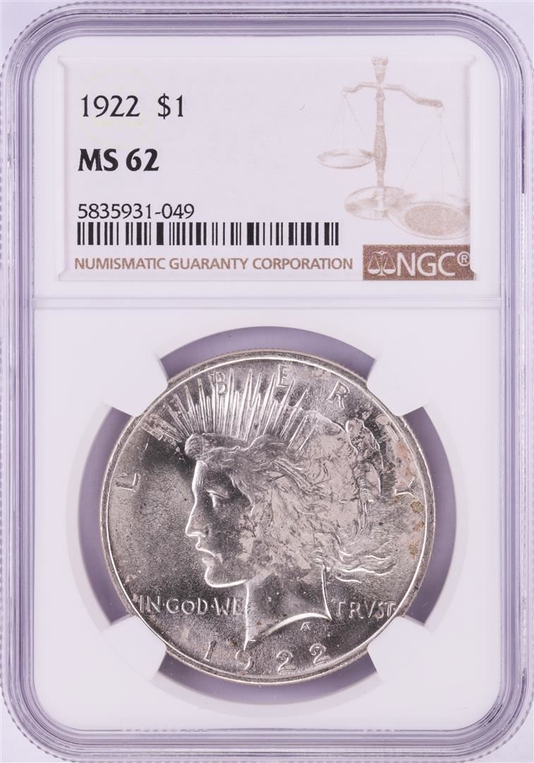 1922 $1 Peace Silver Dollar Coin NGC MS62