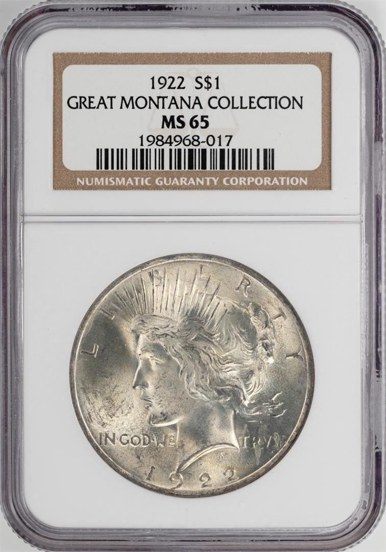 One 1922 $1 Peace Silver Dollar Coin NGC MS65. NGC Certified.