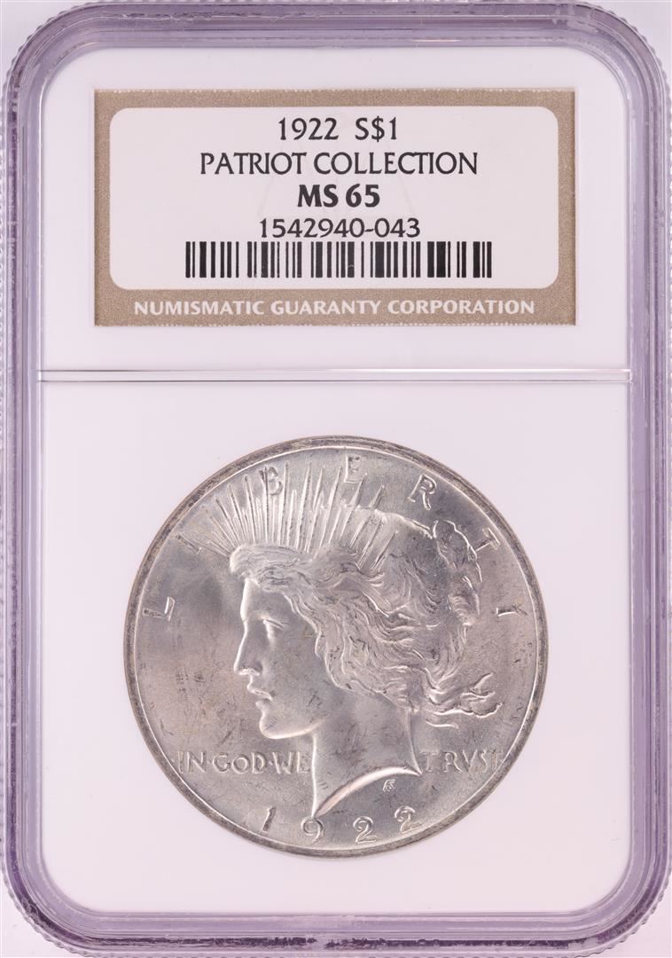 One 1922 $1 Peace Silver Dollar Coin NGC MS65. NGC Certified.