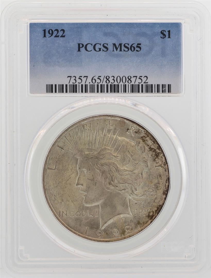 One 1922 $1 Peace Silver Dollar Coin PCGS MS65. PCGS Graded.