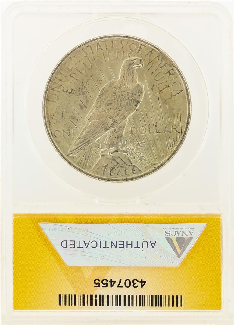 One 1922 $1 Peace Silver Dollar Rim Clip ANACS MS60. ANACS Certified.