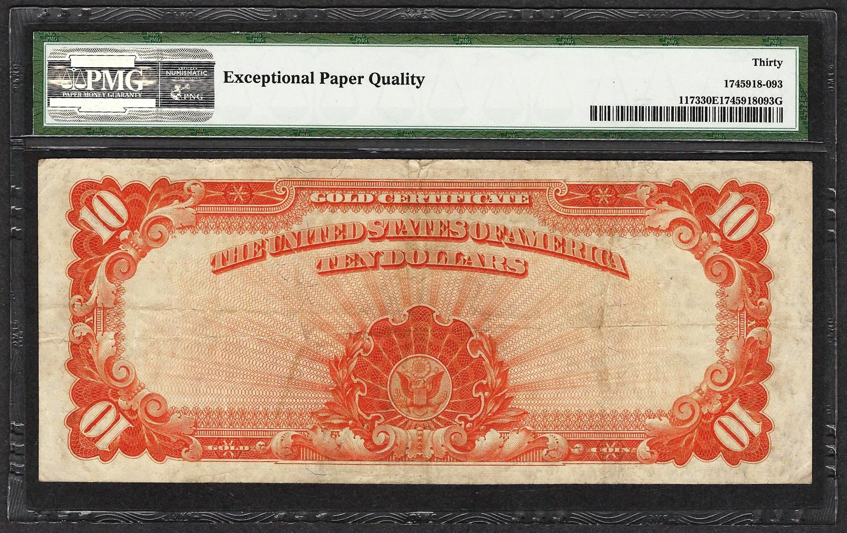 1922 $10 Gold Certificate Note Fr.1173 Large S/N PMG Very Fine 30EPQ