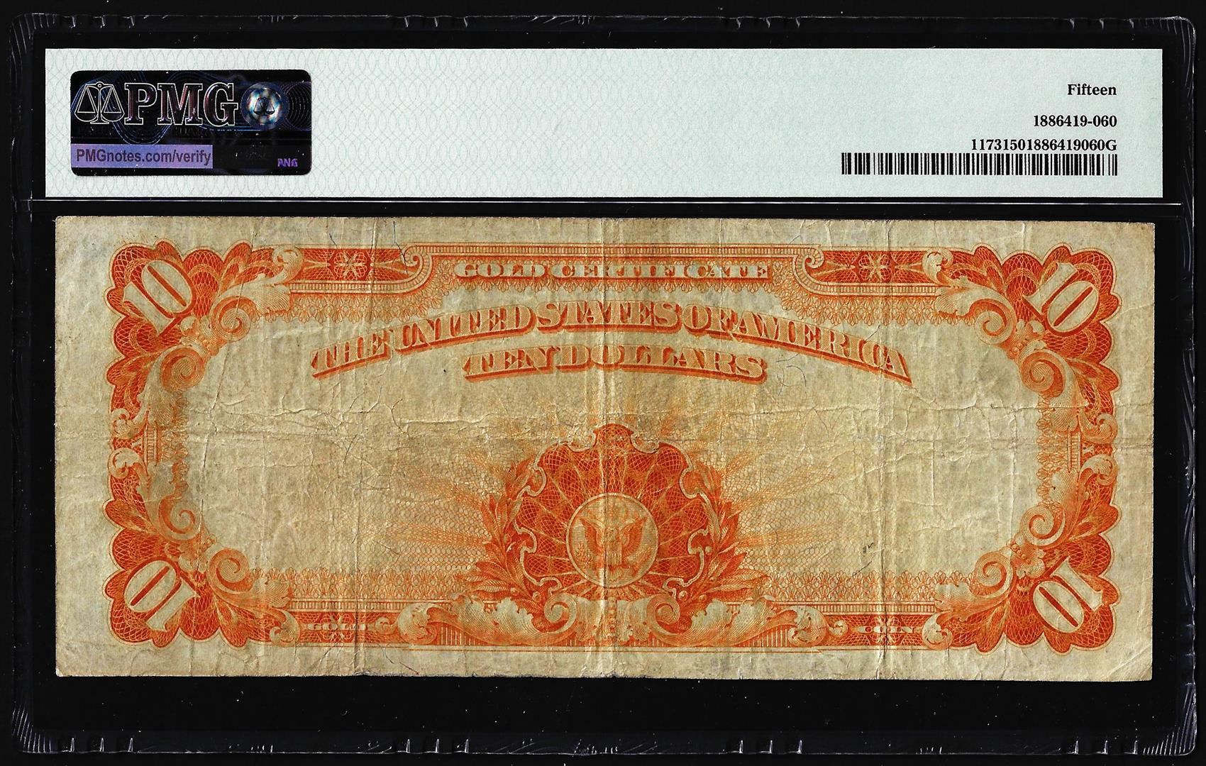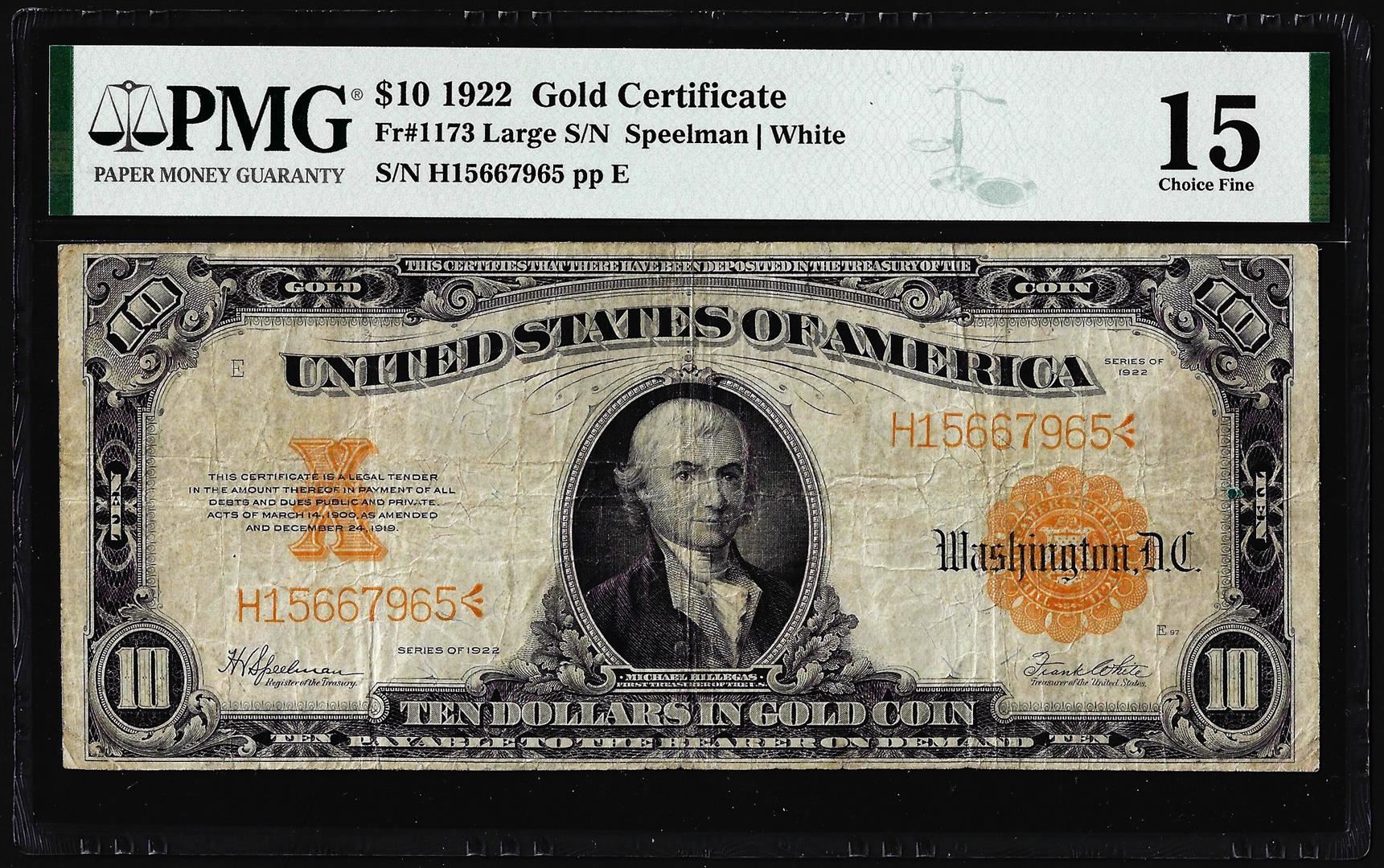 One 1922 $10 Gold Certificate Note Fr.1173 PMG Choice Fine 15. PMG Certified.