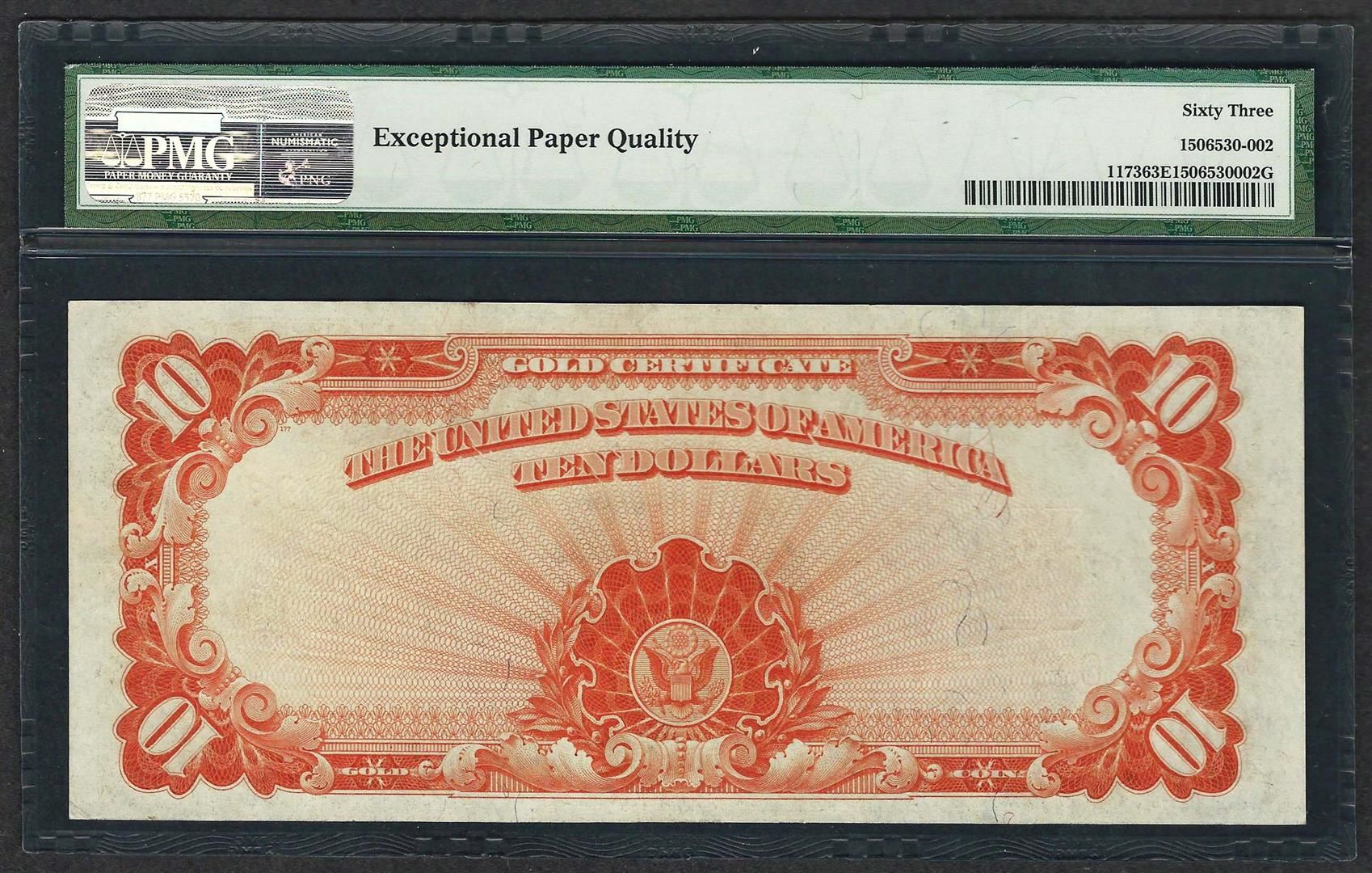 One 1922 $10 Gold Certificate Note Fr.1173 PMG Choice Uncirculated 63EPQ. PMG Certified.