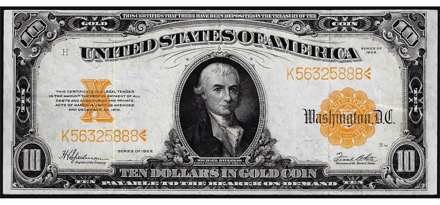 One 1922 $10 Gold Certificate Note Great Color.