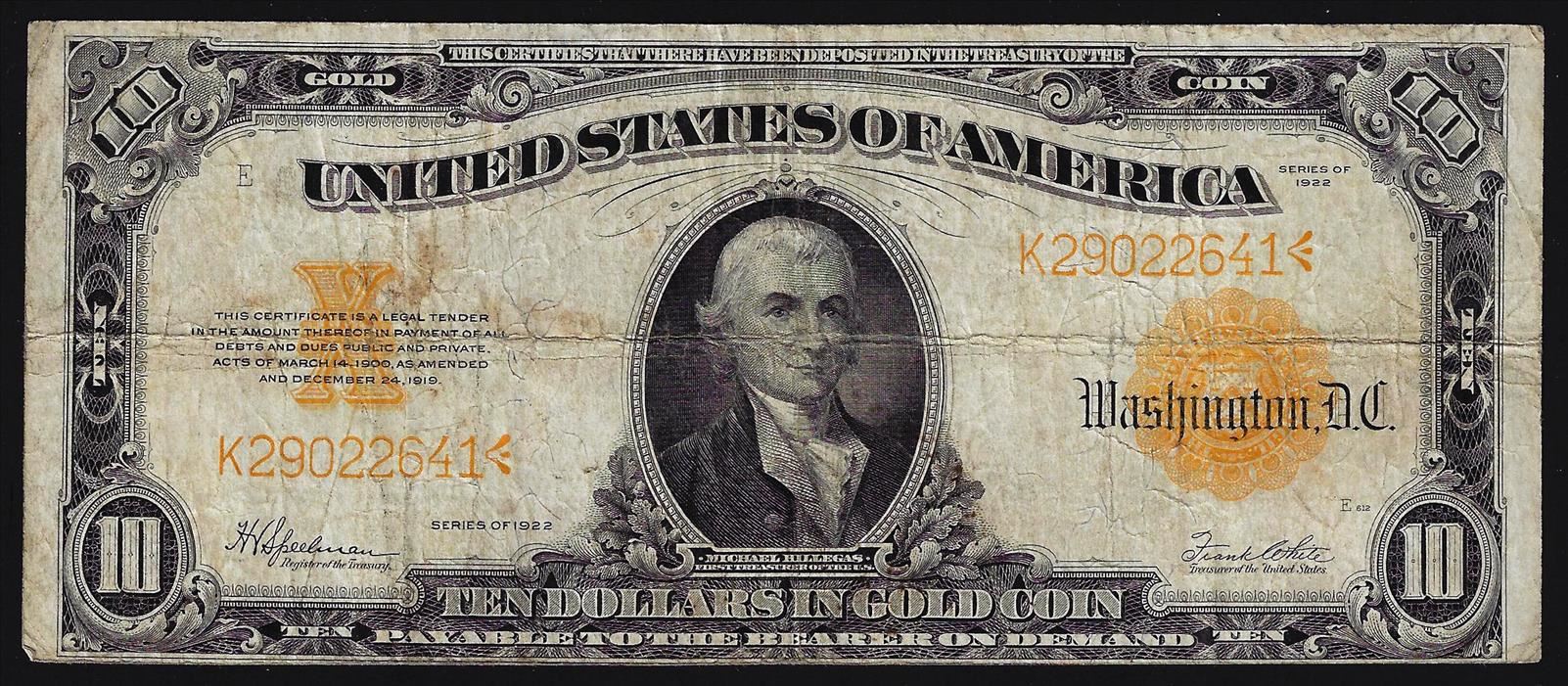 One 1922 $10 Gold Certificate Note.