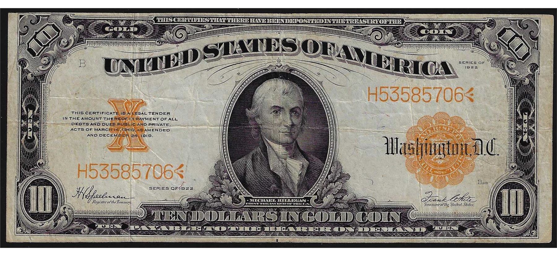 One 1922 $10 Gold Certificate Note.