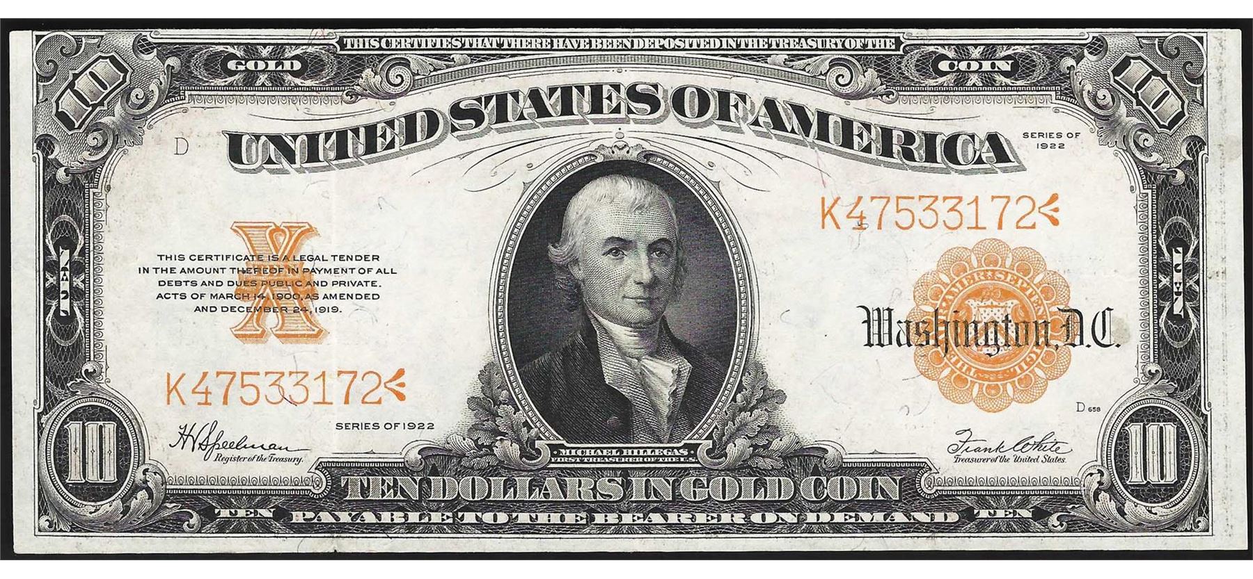 One 1922 $10 Gold Certificate Note.