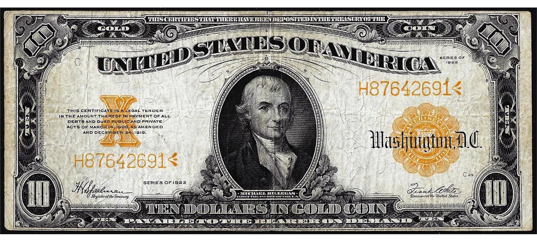 One 1922 $10 Gold Certificate Note.